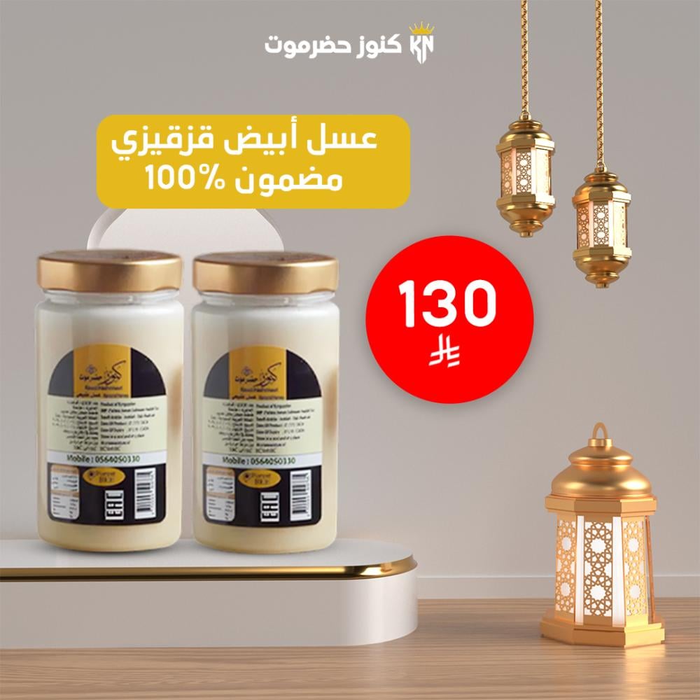 استمتع بعسل أبيض أصلي وطبيعي 100% من جبال قرغيزستان، مع عرض مميز يجمع بين الجودة والفائدة. عسل ابيض مجري من كنوز حضرموت بنكهة فريدة وقوام كريمي، والآن يمكنك الحصول على عبوتين بسعر واحد مع شحن مجاني سريع. تجربة عسل طبيعية تلبي جميع احتياجاتك!