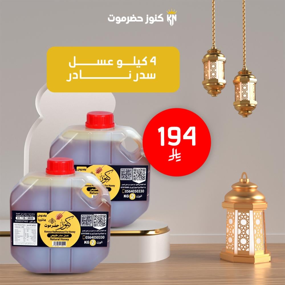 هل تبحث عن عسل فائق الجودة يعكس أصالة الطبيعة؟ نقدم لك عرض عسل سدر النادر من كنوز حضرموت. منتج فريد يستحق أن يكون جزءًا من روتينك اليومي. مع ضمان الأصالة والجودة الممتازة، ستجد في كل عبوة تجربة مميزة تستحق أن تشاركها مع أحبائك.