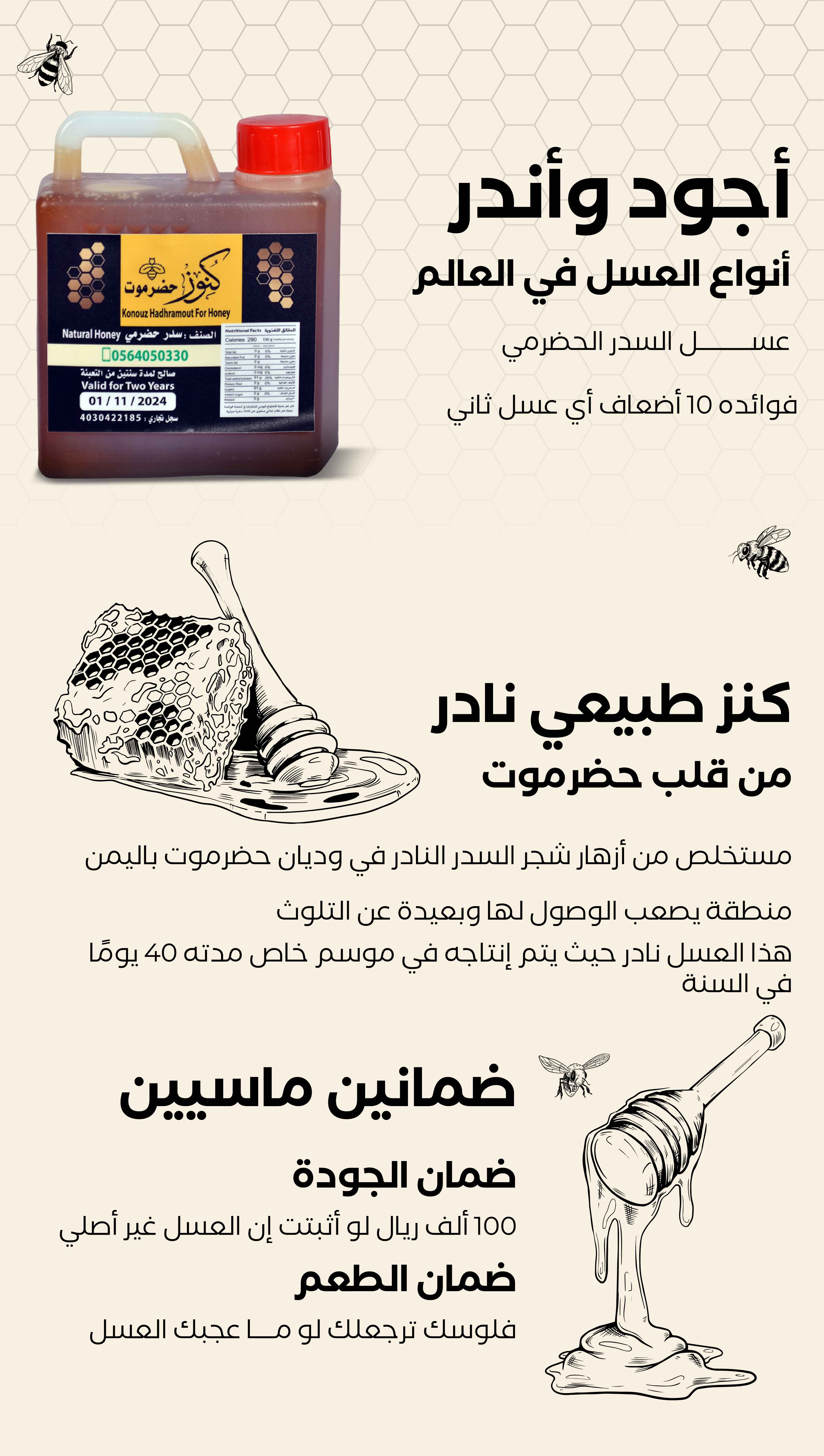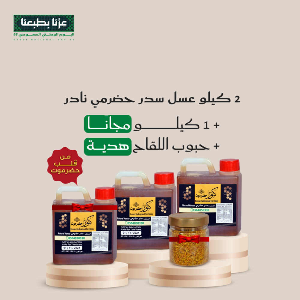 2 كيلو عسل سدر حضرمي نادر + 1 كيلو مجانًـــا + حبوب اللقاح هديـــة (150 جرام)